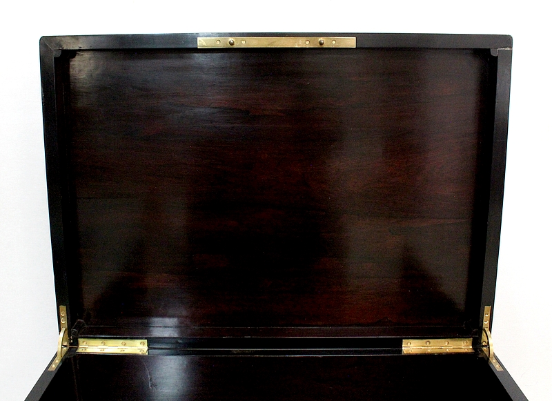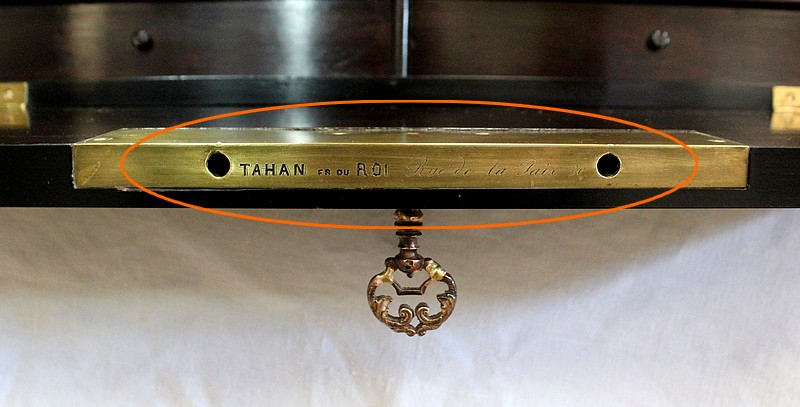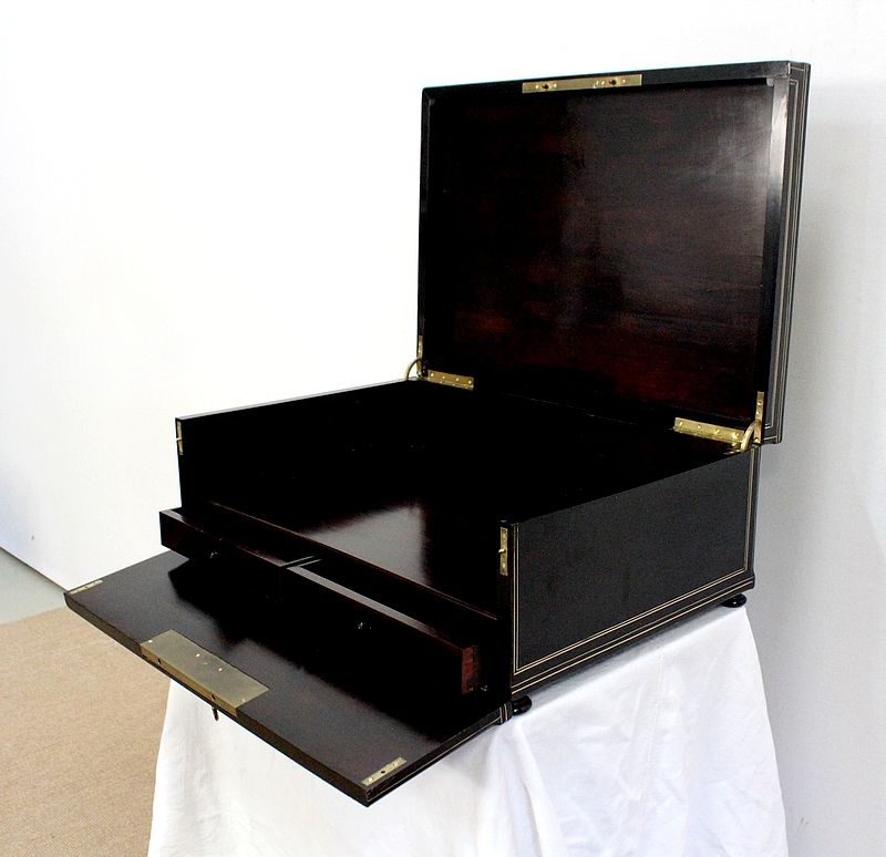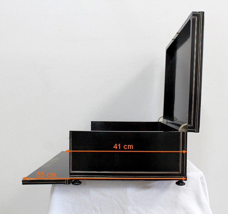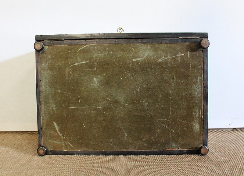Bel écritoire à poser en poirier noirci réalisé par la maison Tahan, située rue de la paix à Paris au milieu du XIXe siècle. Ébéniste de l’empereur Napoléon III, Tahan fournissait exclusivement le mobilier impérial.