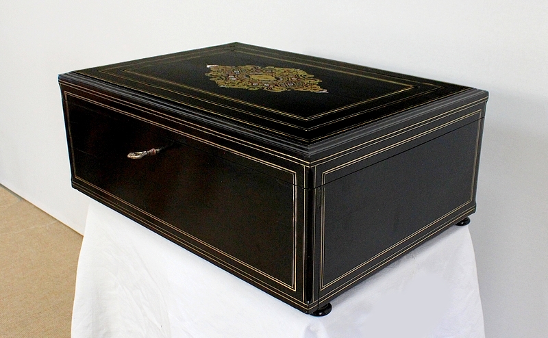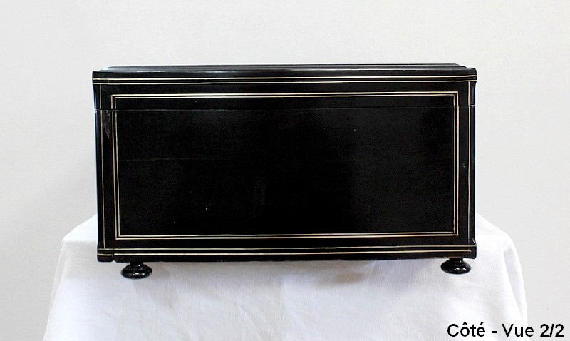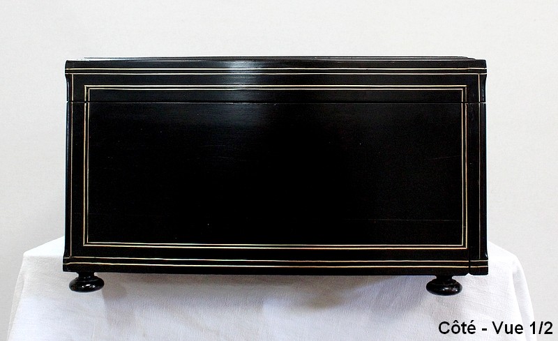 Cet objet luxueux de qualité Parisienne est agrémenté de moulures en ébène et de filets de laiton ciselés.