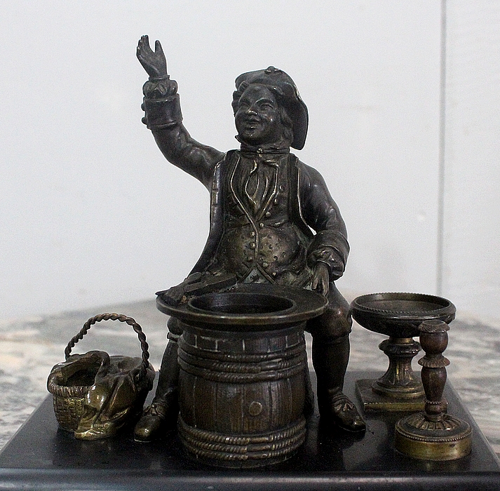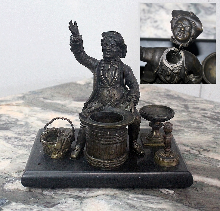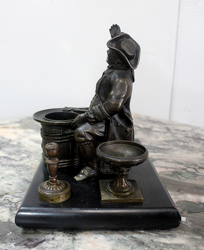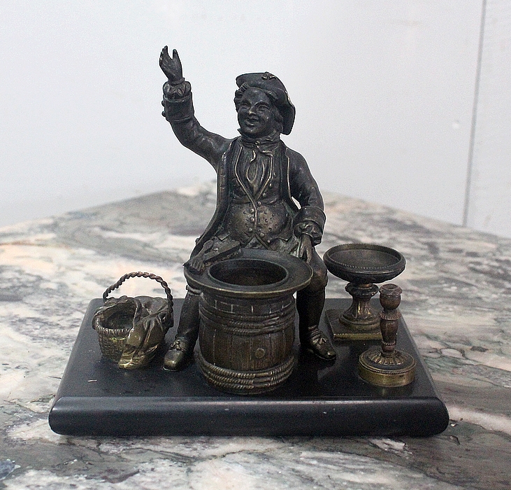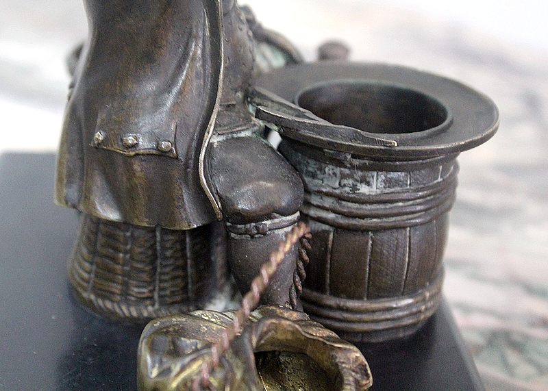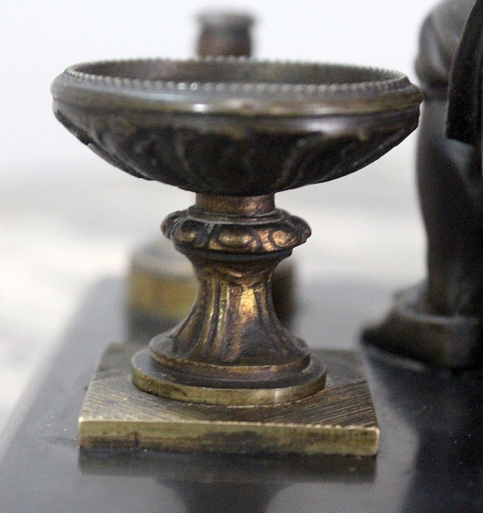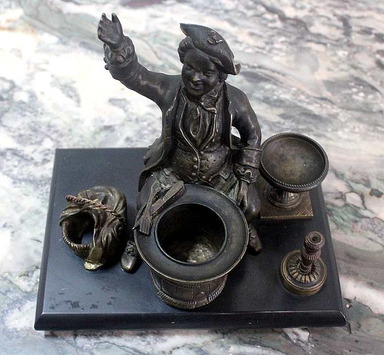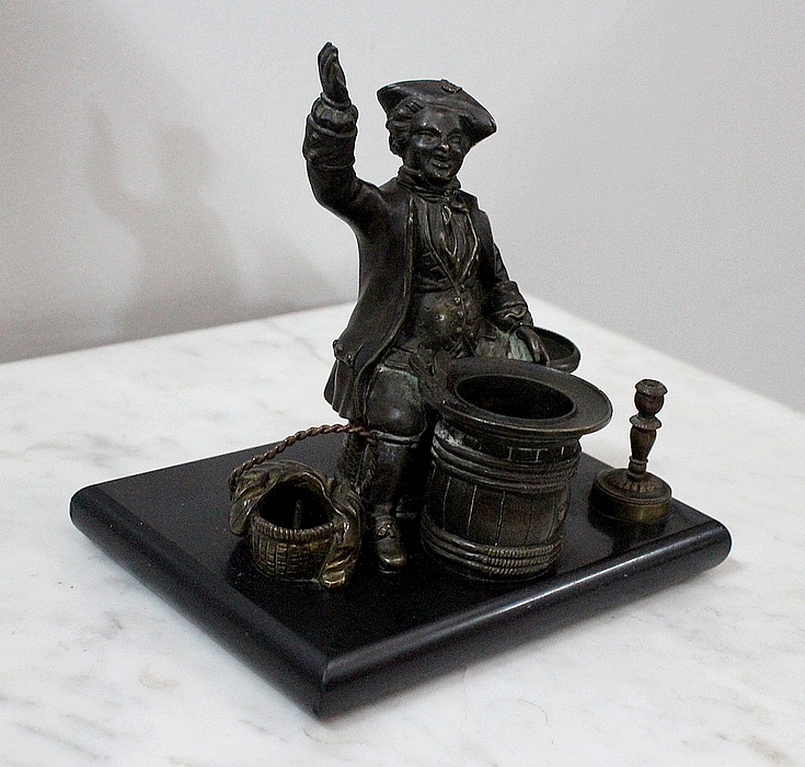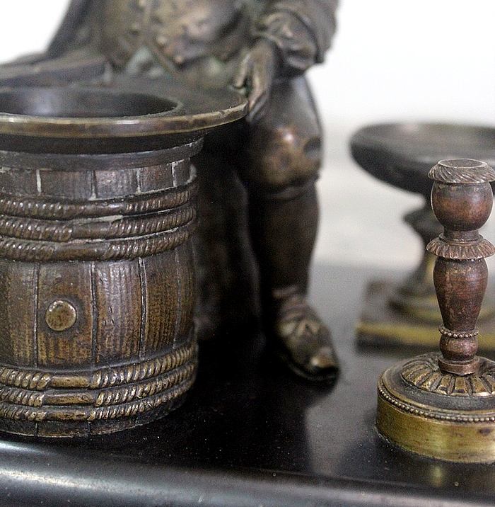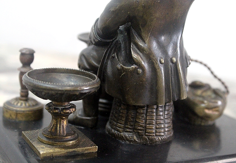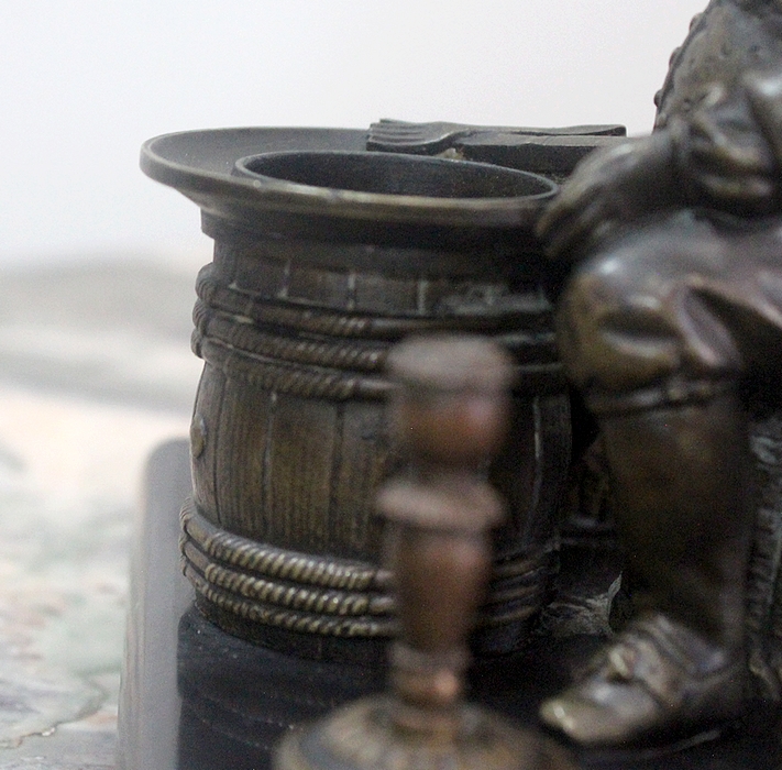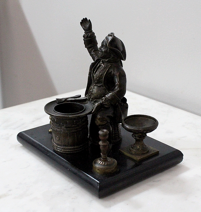 Joli Encrier en Bronze d’époque fin XIXe, constitué d’une tête basculante ouvrant sur un porte-plume.