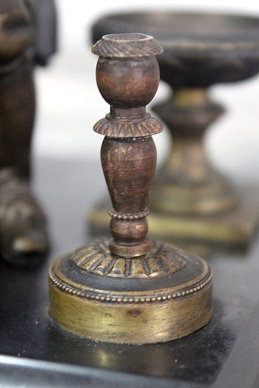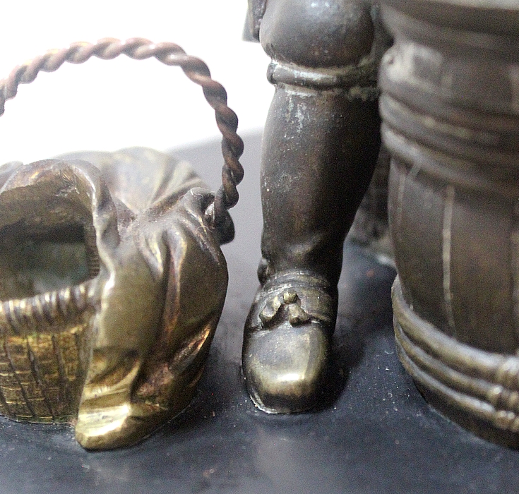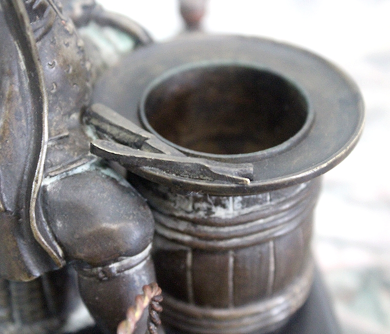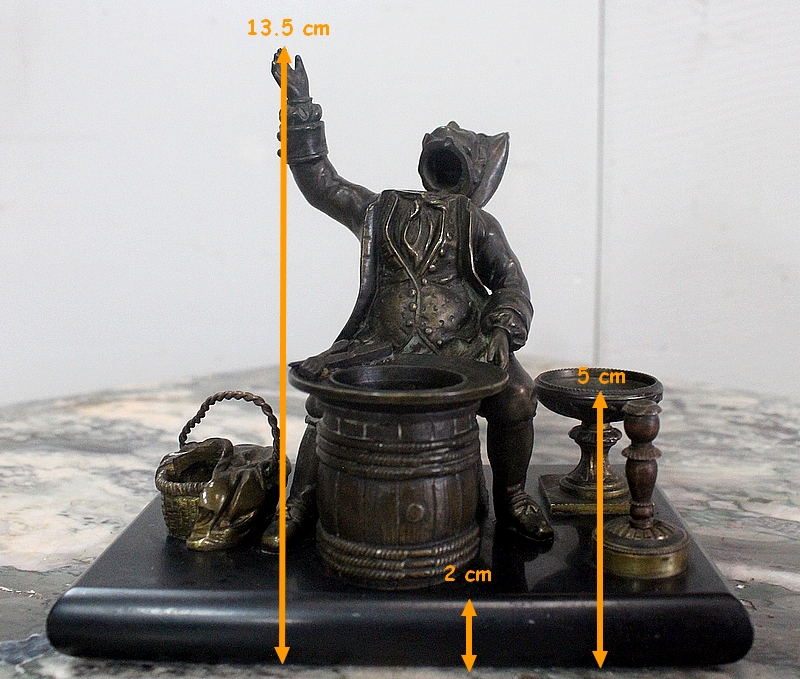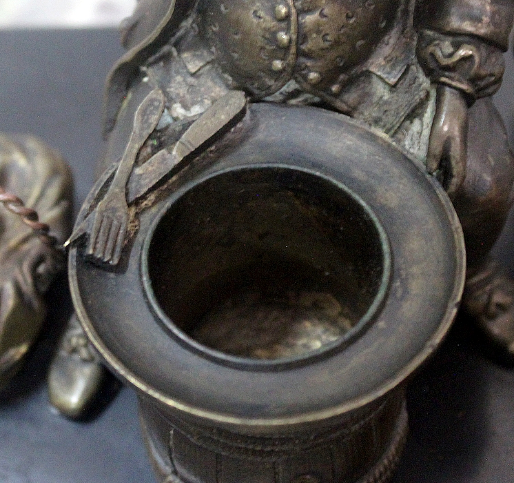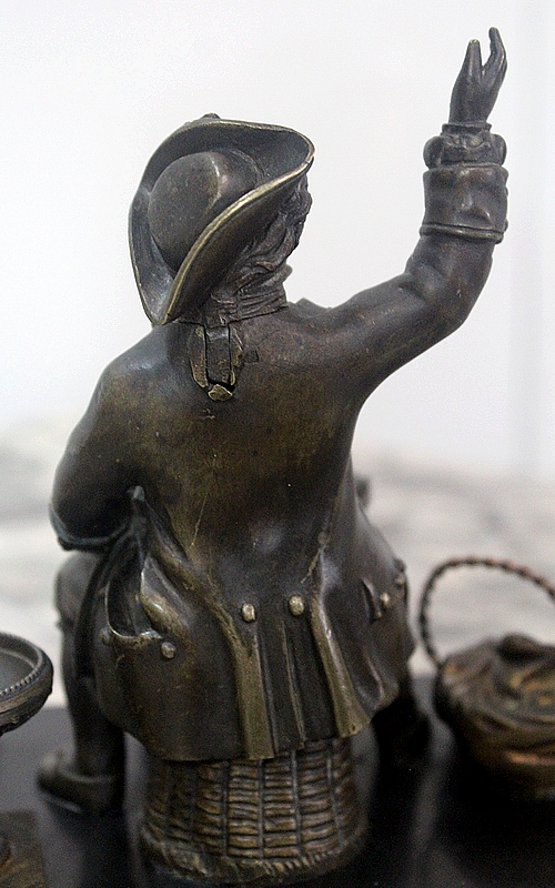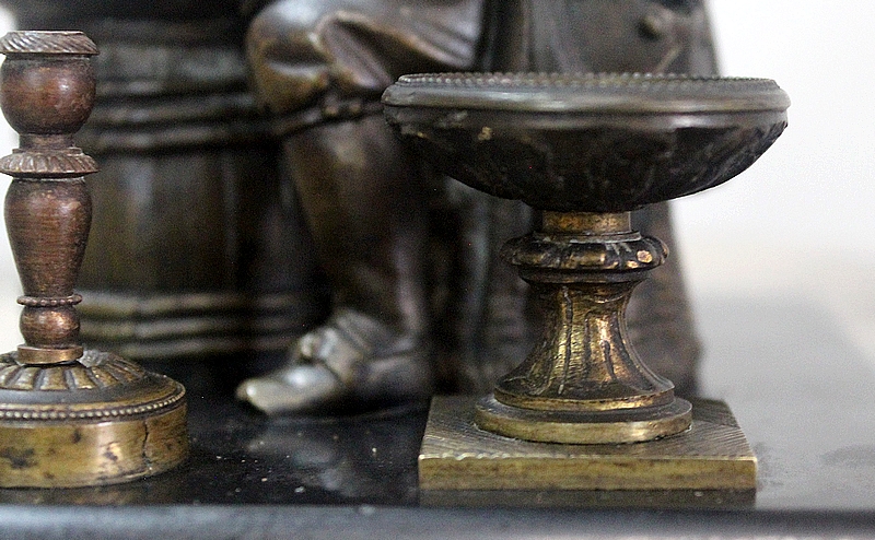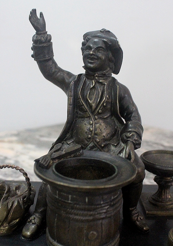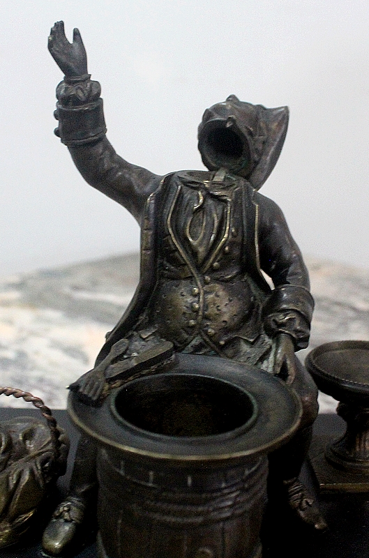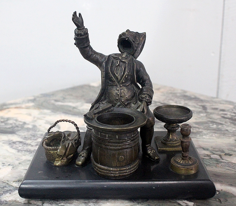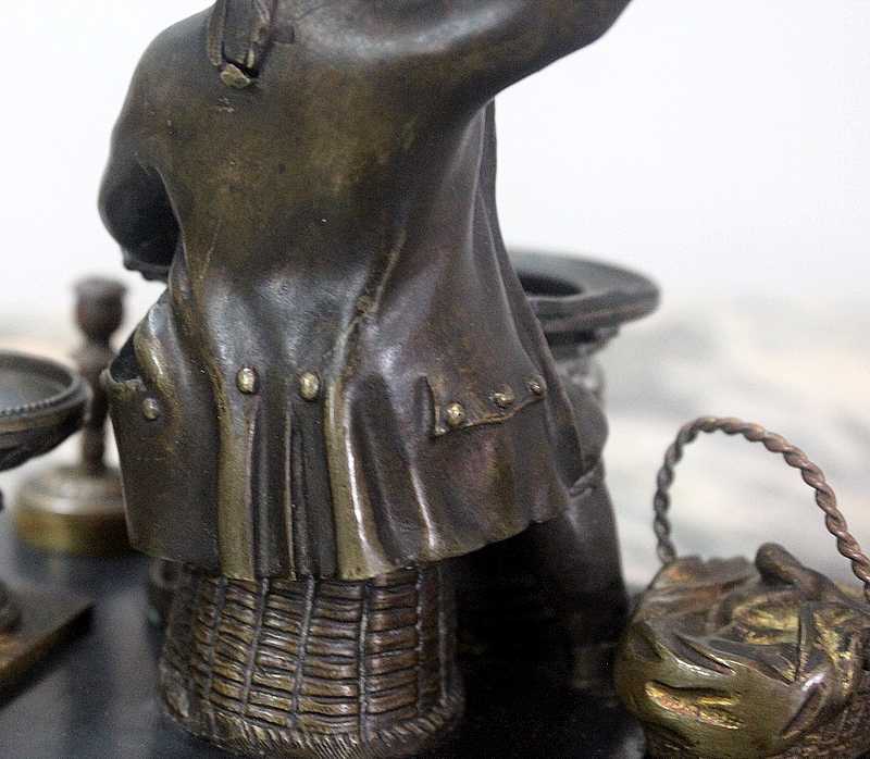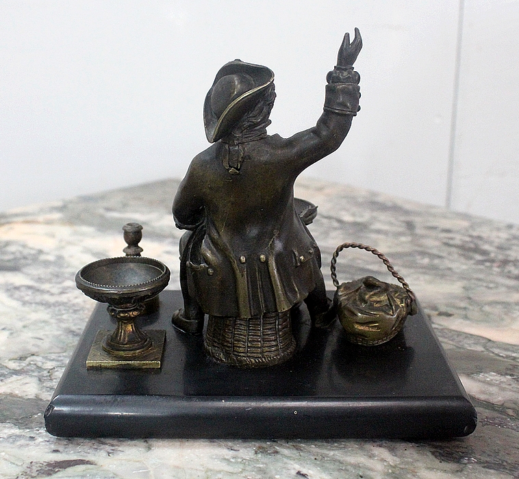 Joli Encrier en Bronze d’époque fin XIXe, constitué d’une tête basculante ouvrant sur un porte-plume.
