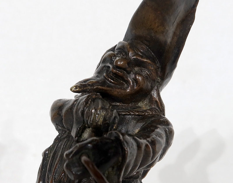 Rappelant les bouffons et autres fous du roi, ce grotesque est une curiosité. Une sculpture unique qui intrigue et fait sourire.