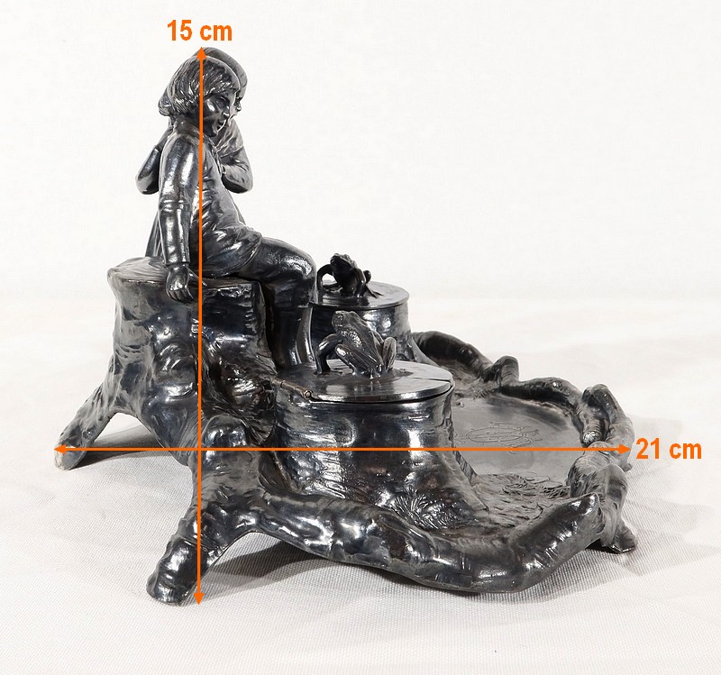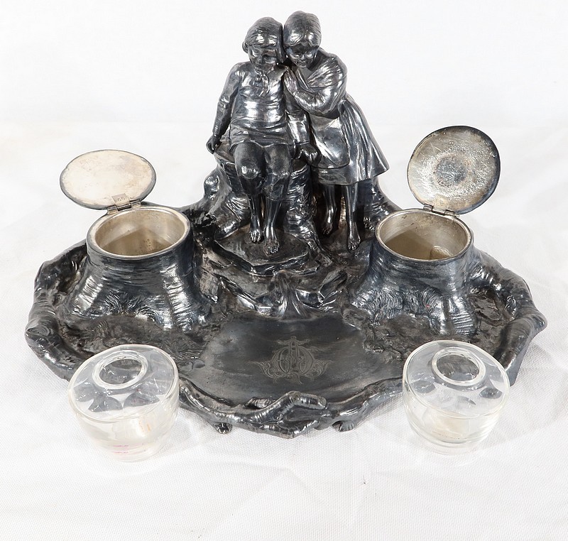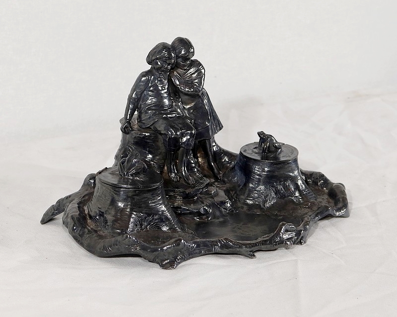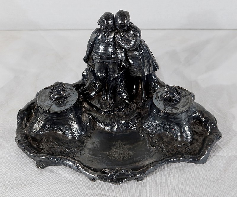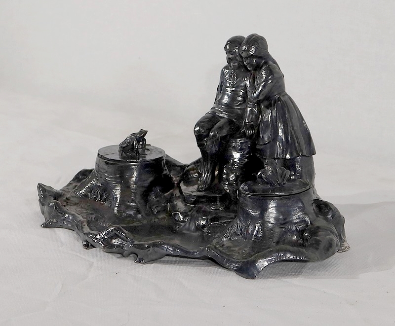 Cette scène charmante et poétique, font de cet encrier délicatement ciselé, un objet rare.