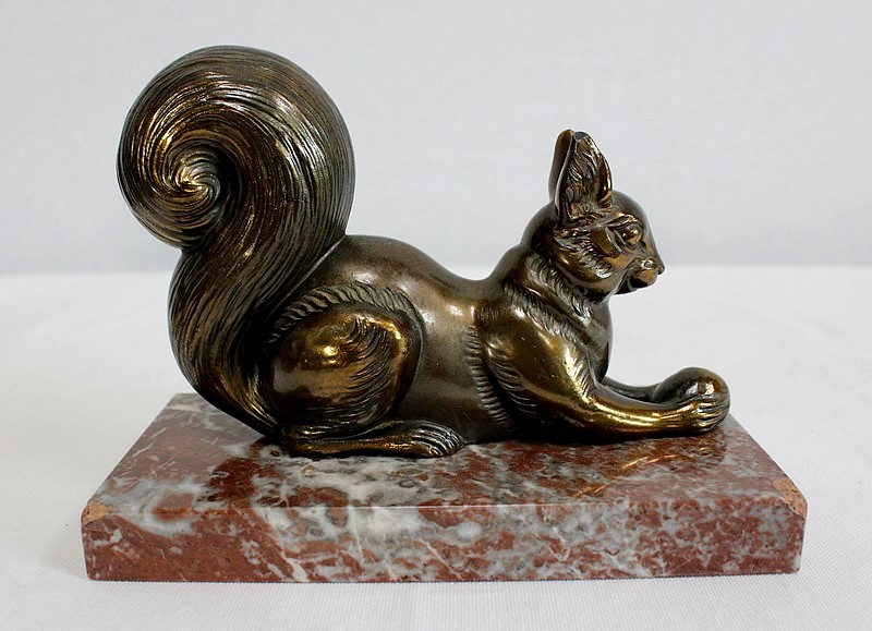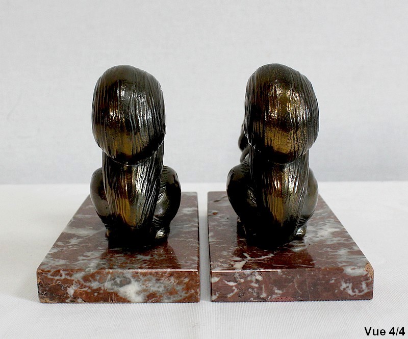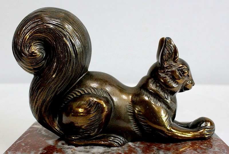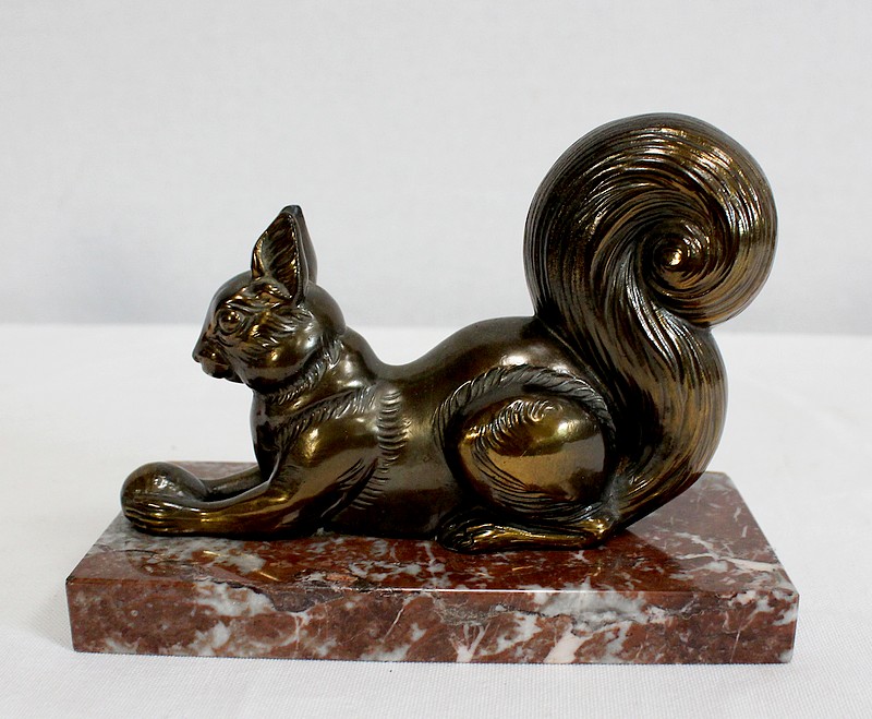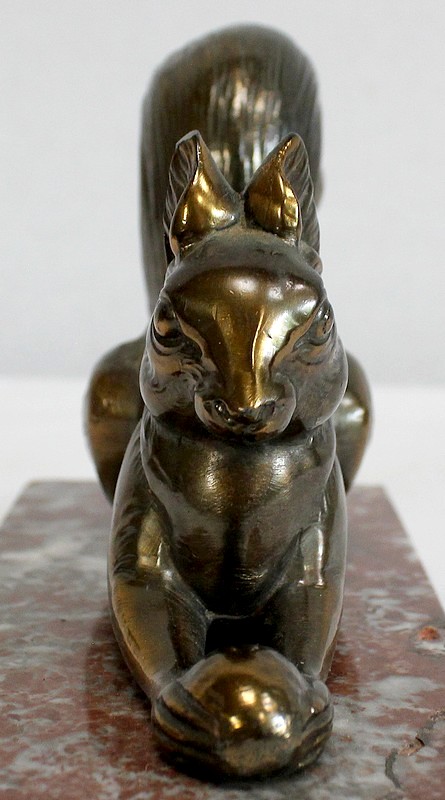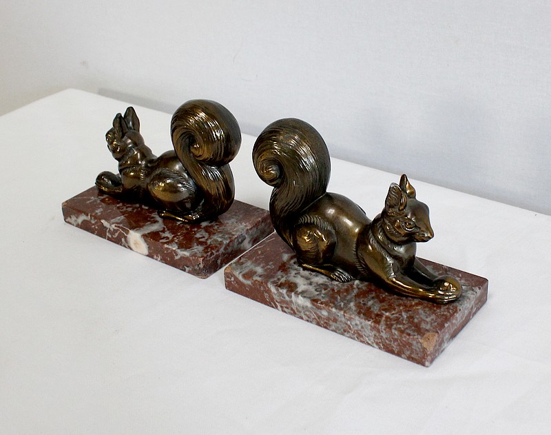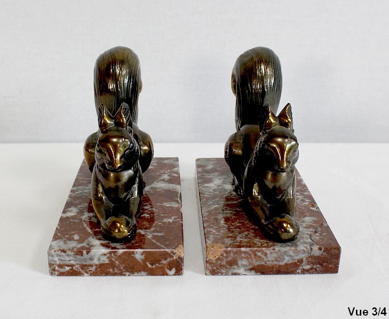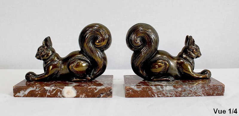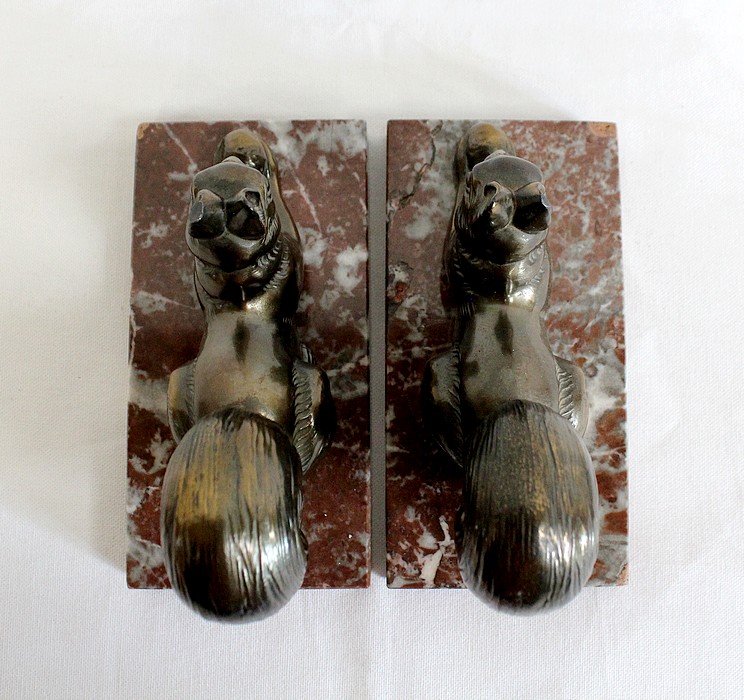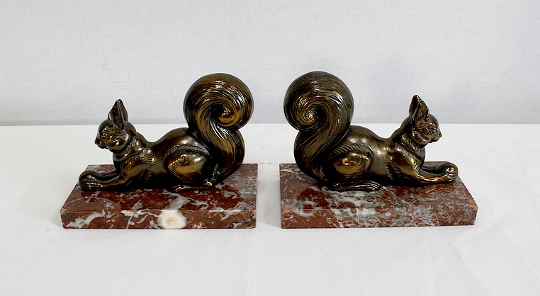 Paire de Serre-Livres « Écureuils » en Métal Doré – 1920
