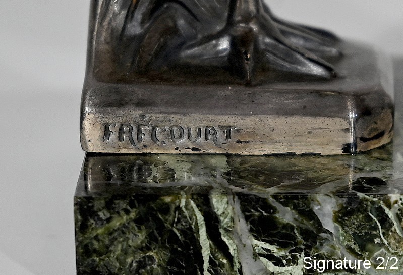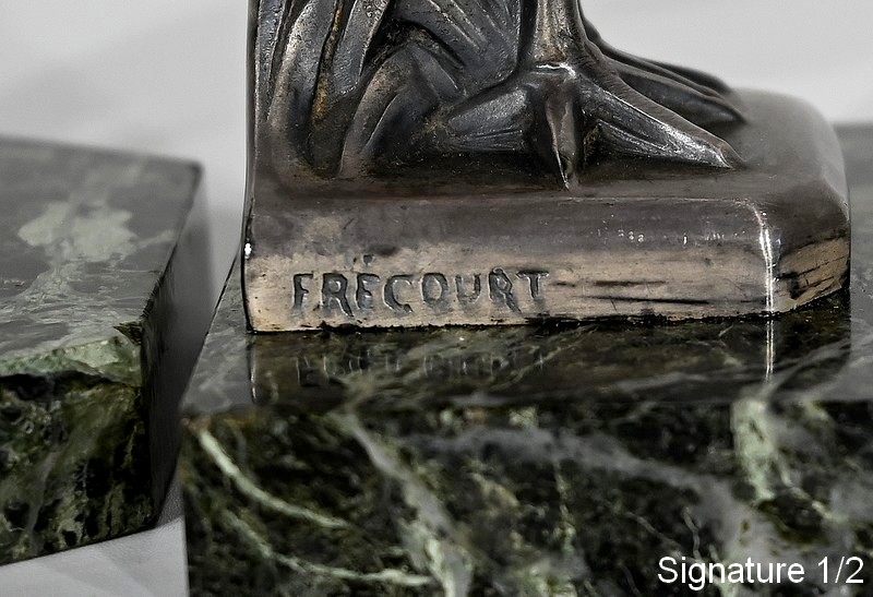 Il s’agit d’une œuvre de Maurice Frécourt (1890-1961) qui acquiert renommée et prestige dès sa participation au Salon des artistes en 1920. Connu pour traduire les impératifs du style Art Déco dans sa vision du monde animalier, ses créations sont devenues des classiques de la représentation animalière stylisée.