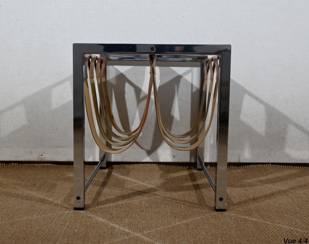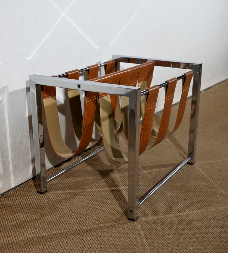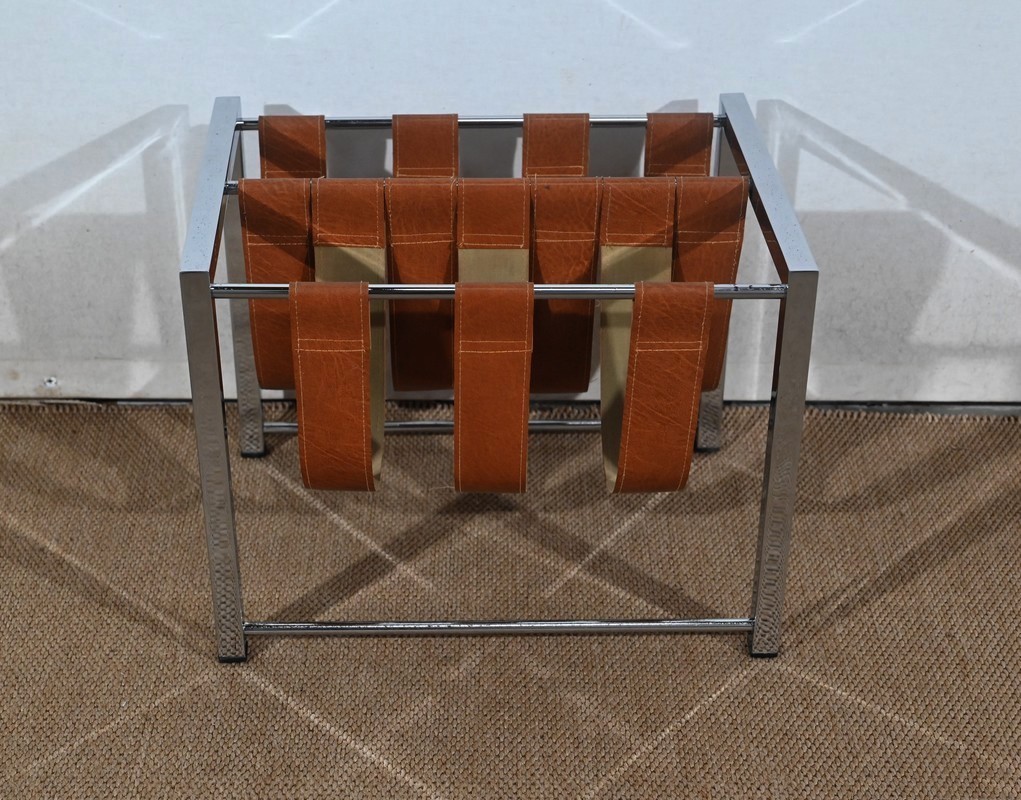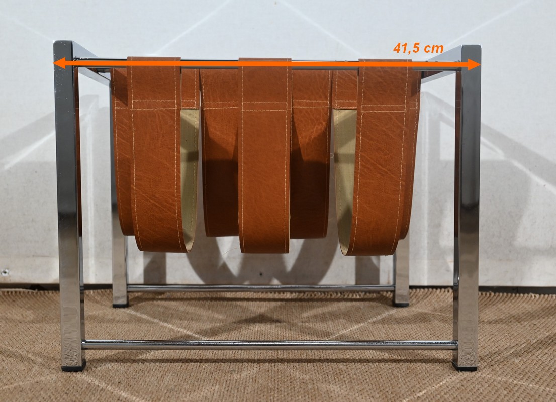Porte-revues à structure rectangulaire en métal chromé de marque Novatrend (acteur dans la vente de mobilier et de décoration design haut de gamme).