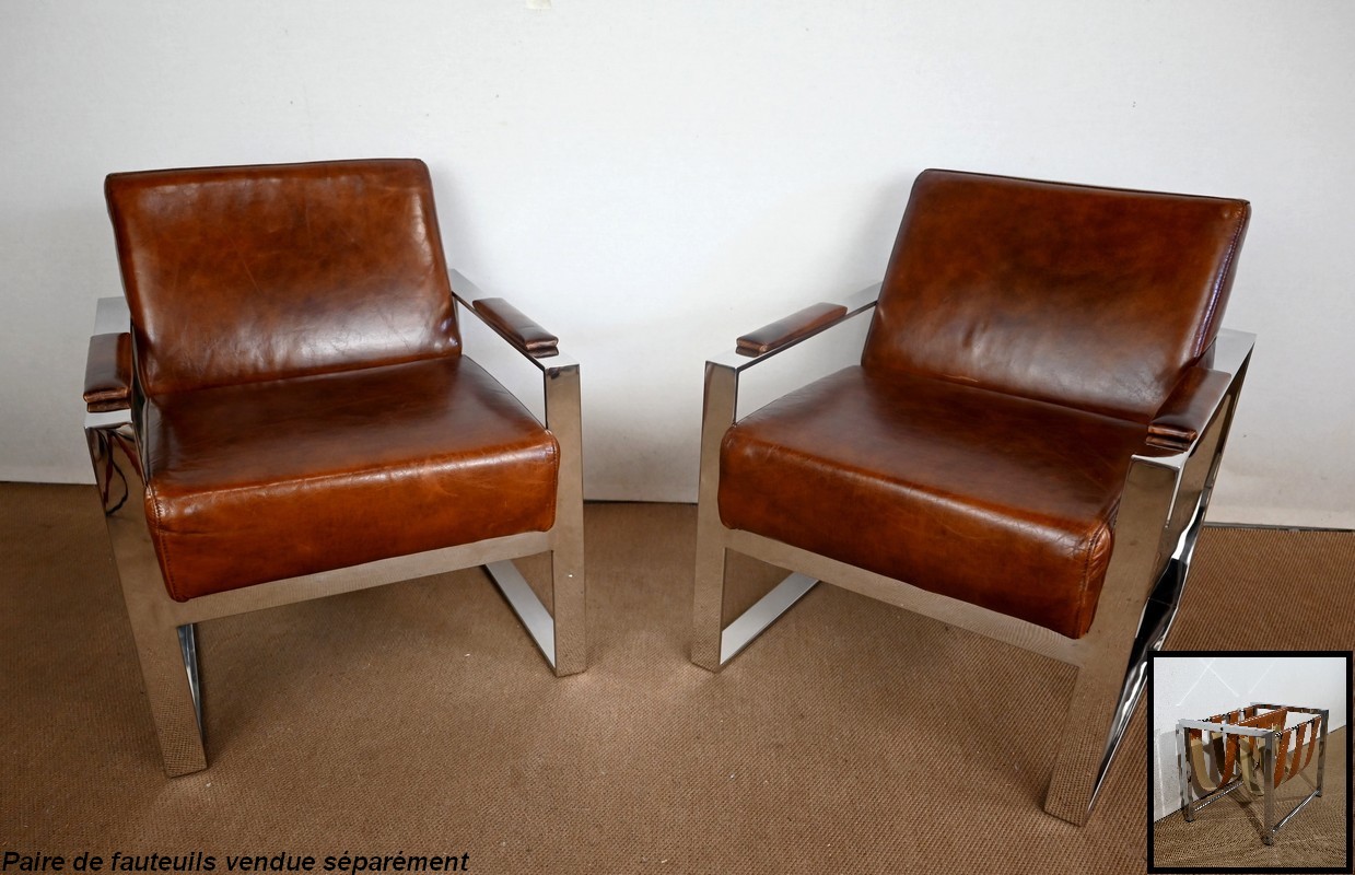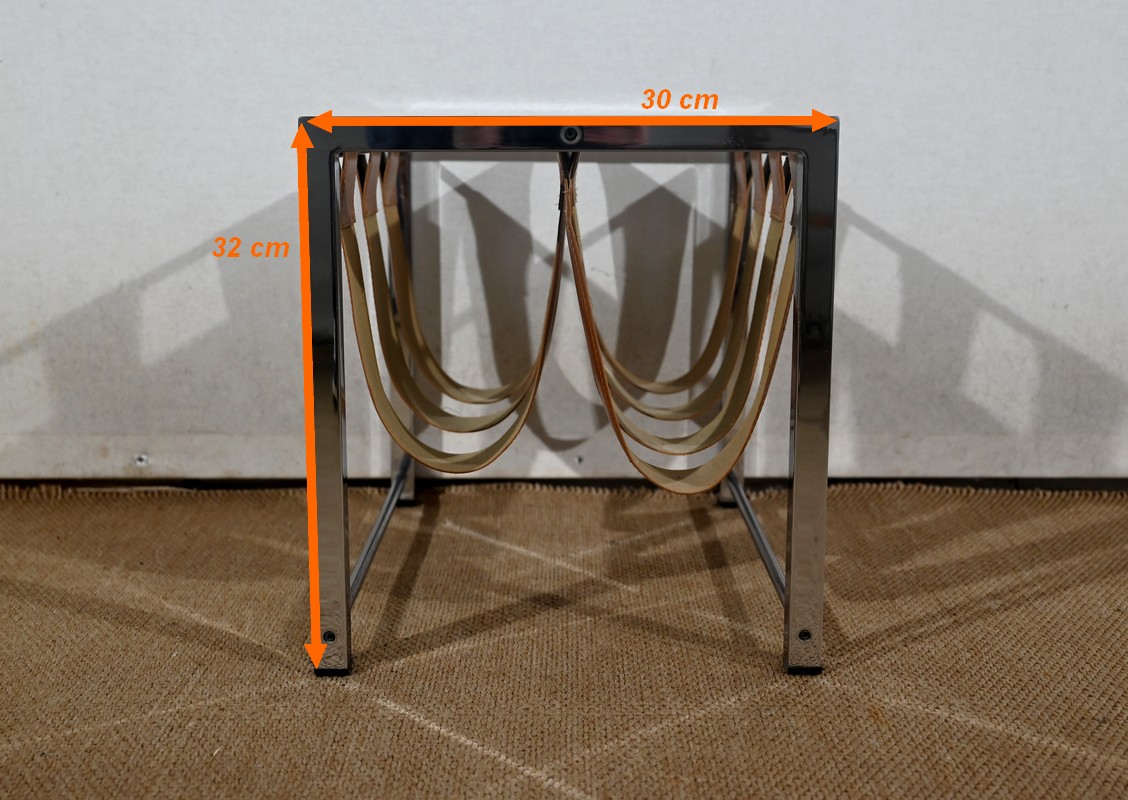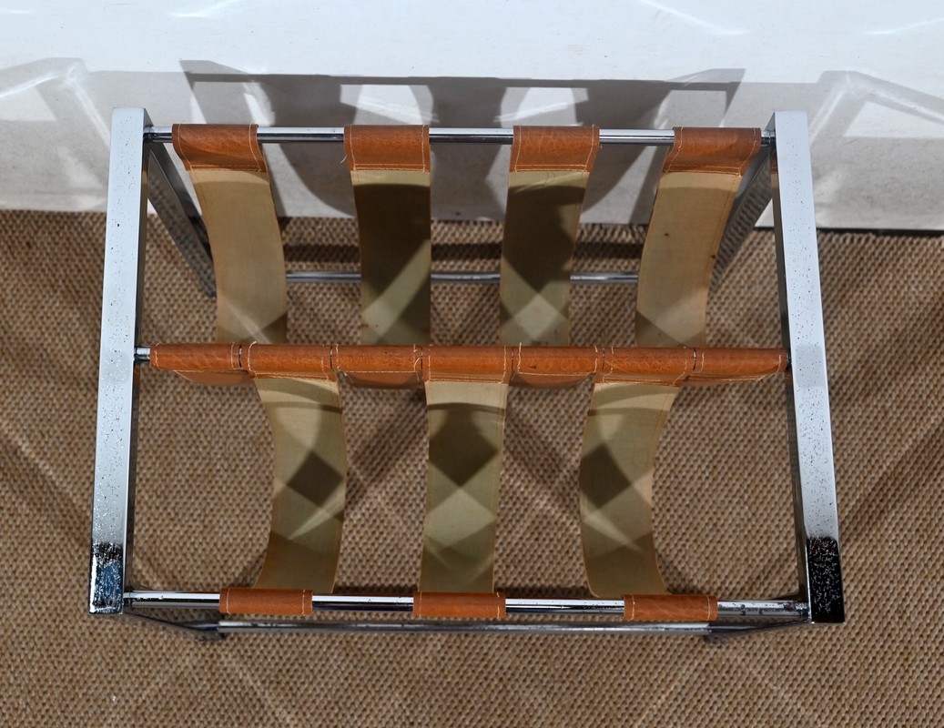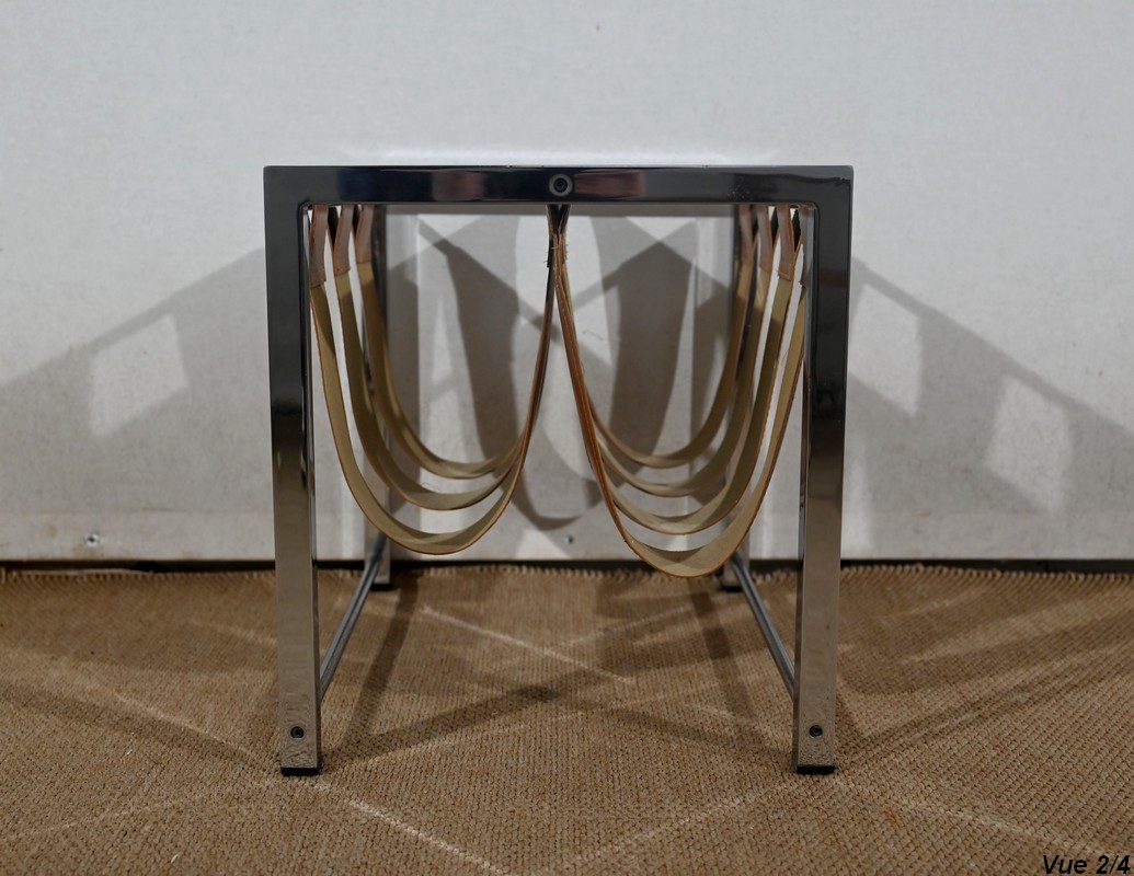 Porte-revues à structure rectangulaire en métal chromé de marque Novatrend (acteur dans la vente de mobilier et de décoration design haut de gamme).