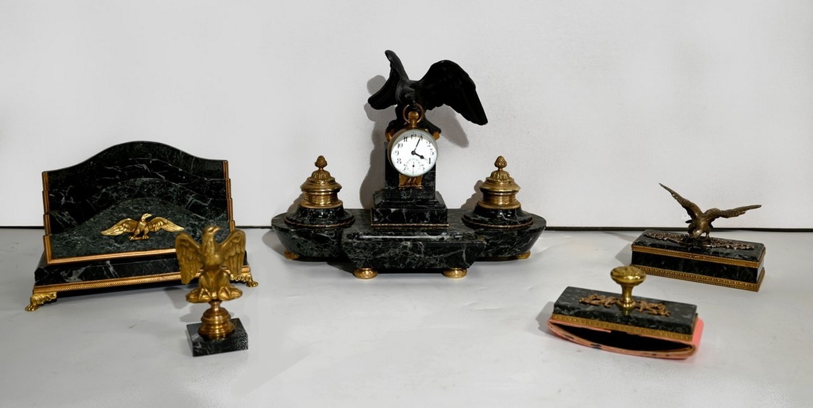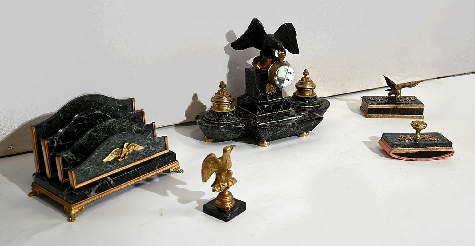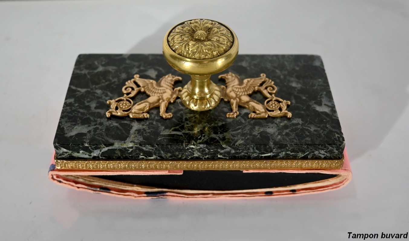 Rare Nécessaire de Bureau en Marbre et Bronze, style Empire – 2ème moitié du XIXe