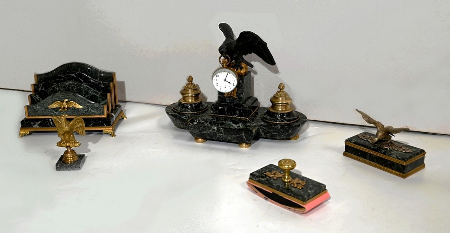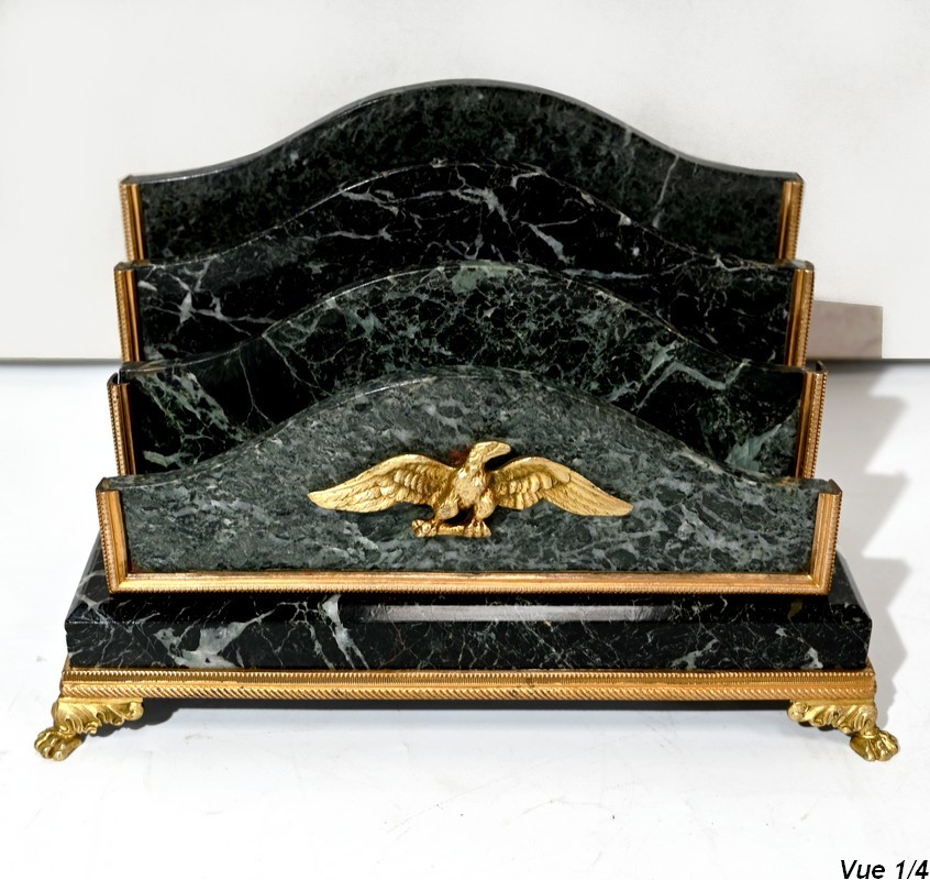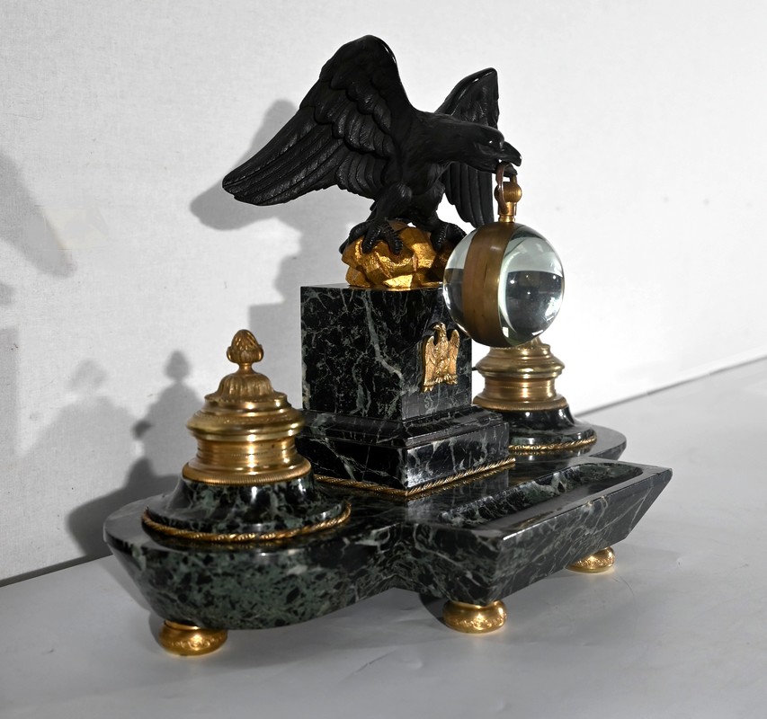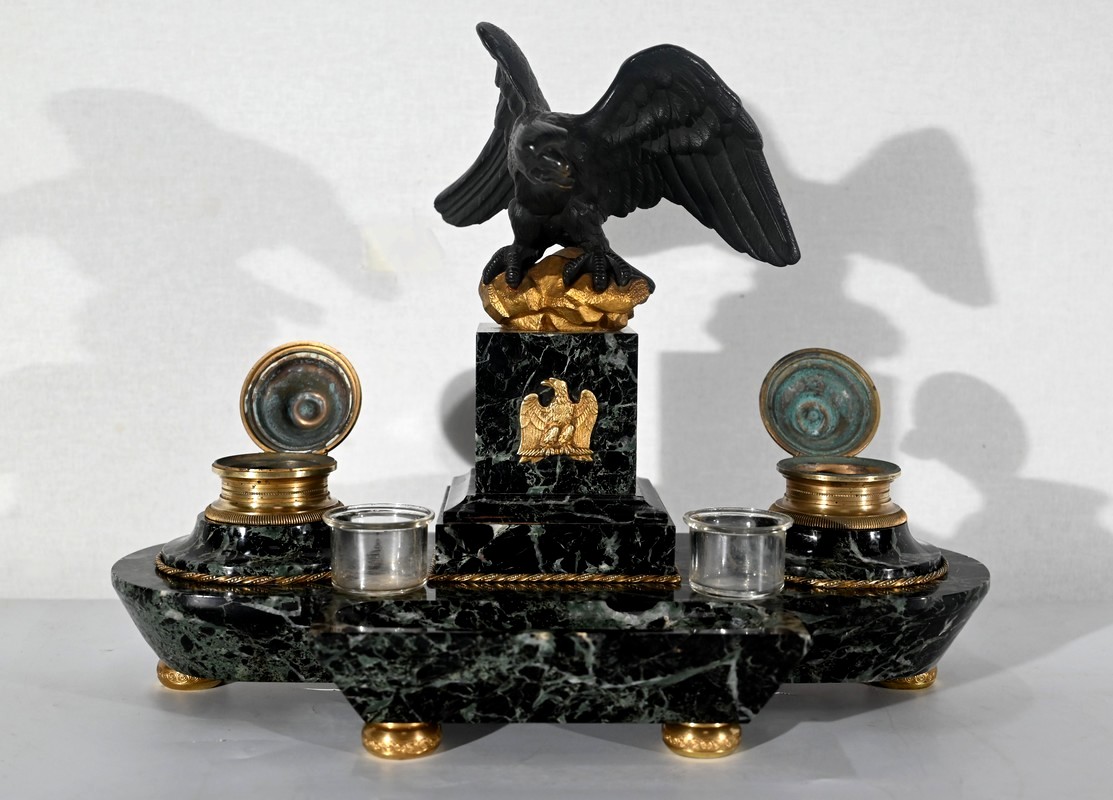 Rare Nécessaire de Bureau en Marbre et Bronze, style Empire – 2ème moitié du XIXe