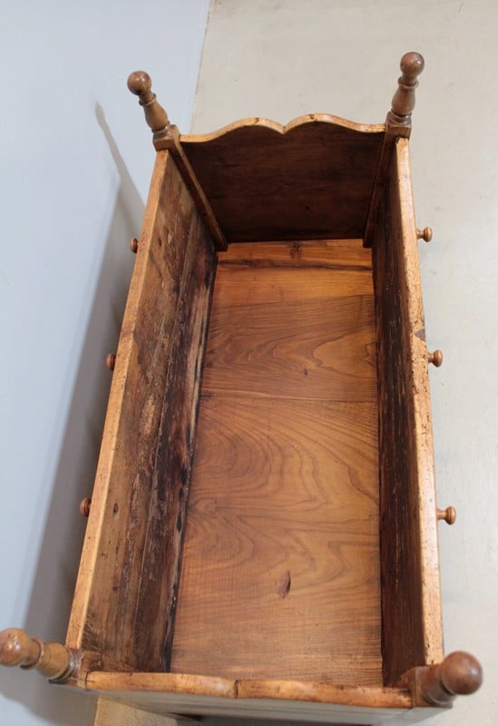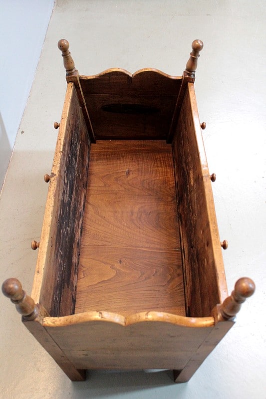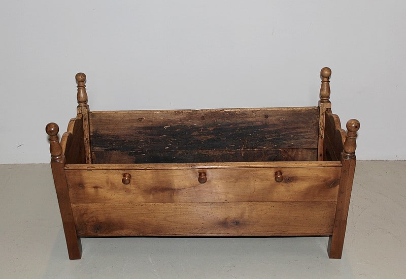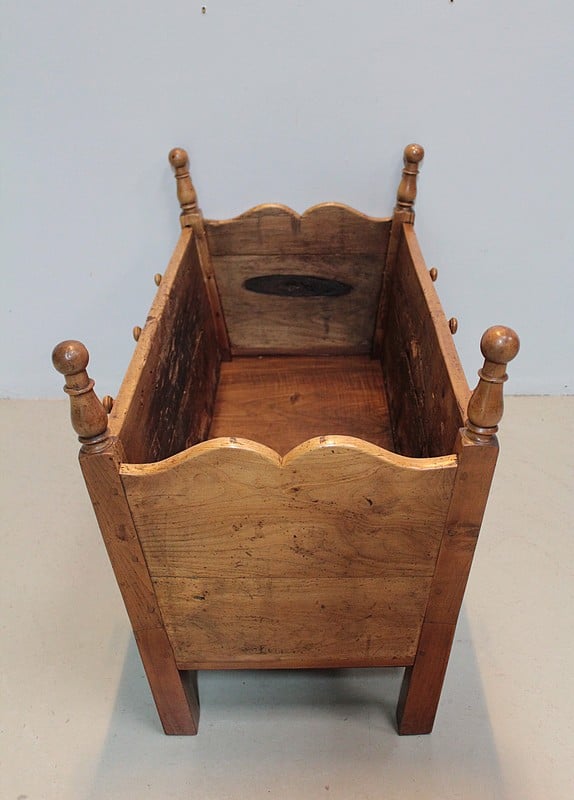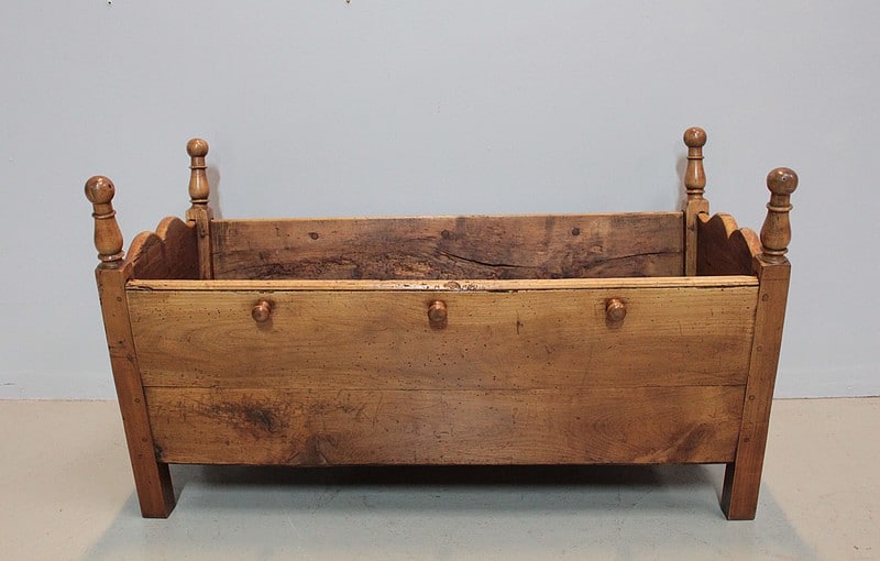 Berceau bas en merisier, en forme de pétrin, reposant sur 4 pieds droits.