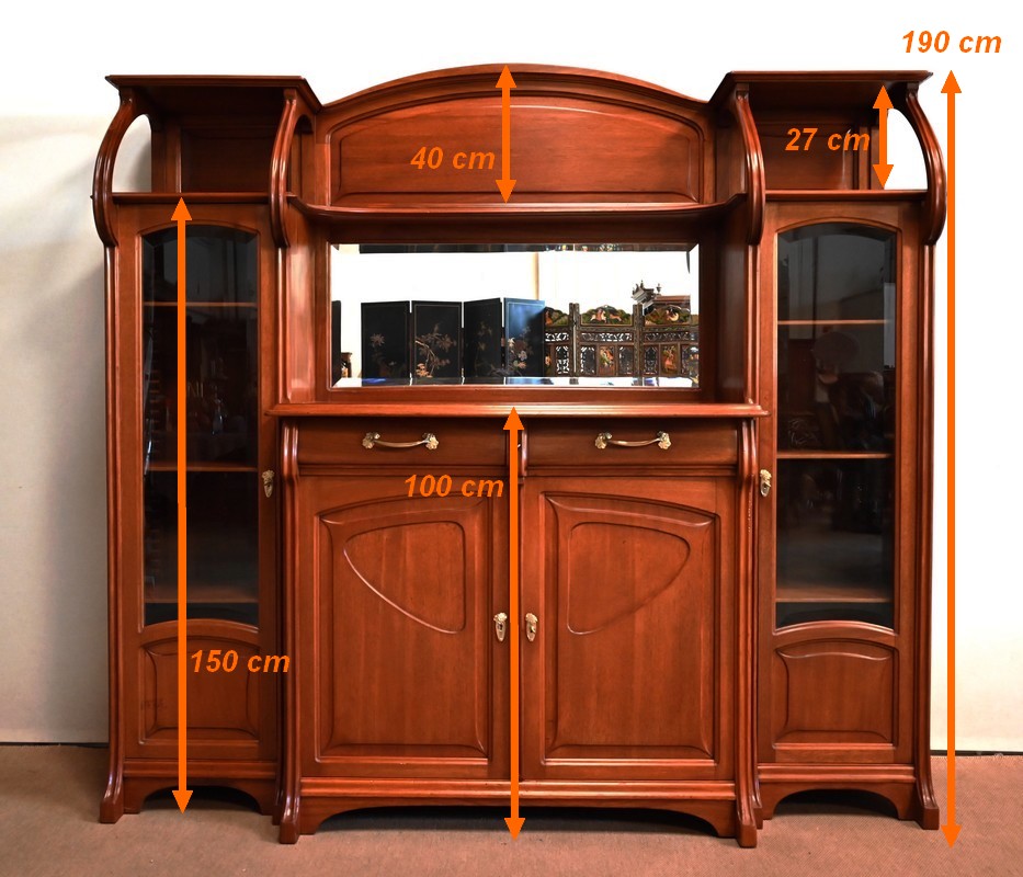 Important Buffet Vitrine en Acajou, attribué à la Maison E. Diot, Art Nouveau – 1900