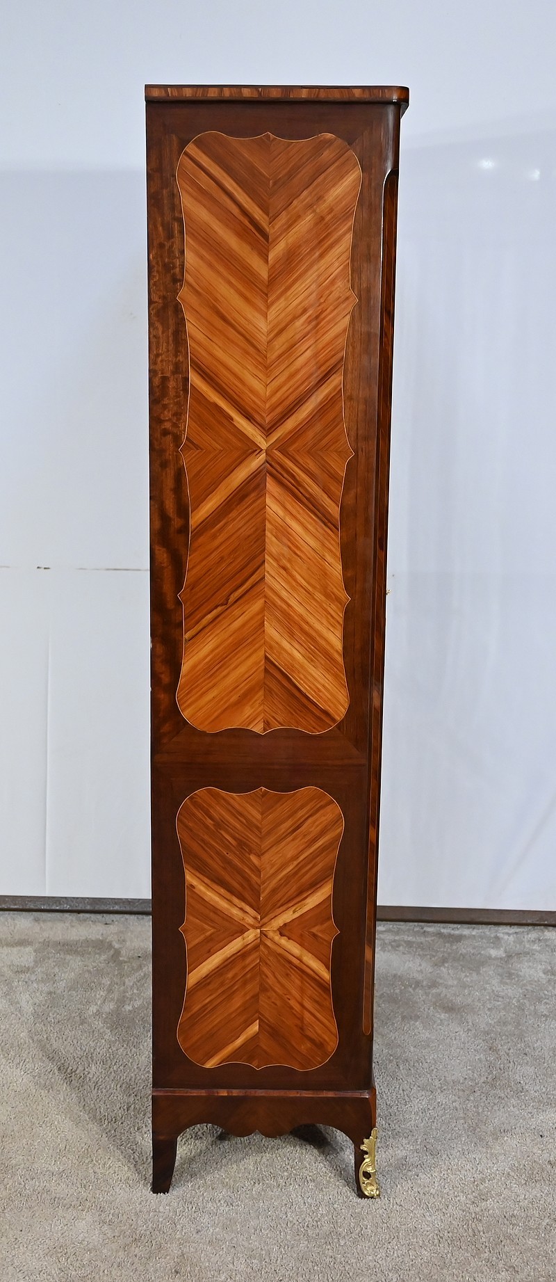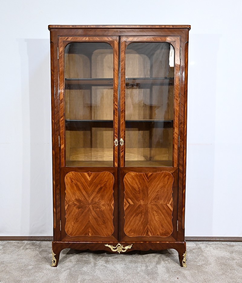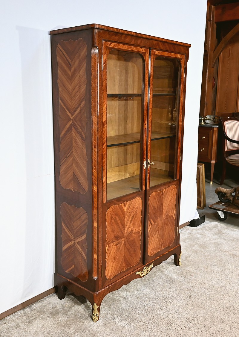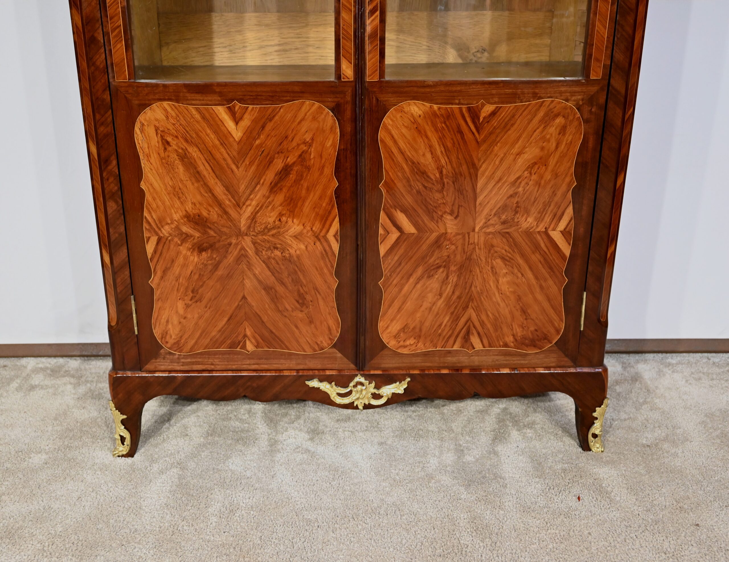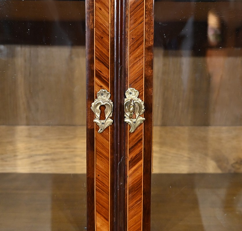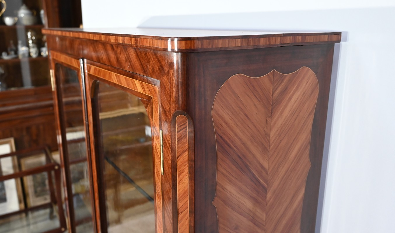 Belle vitrine en marqueterie de bois de rose et d’acajou, issue d’un atelier parisien du milieu du XIXe siècle.
