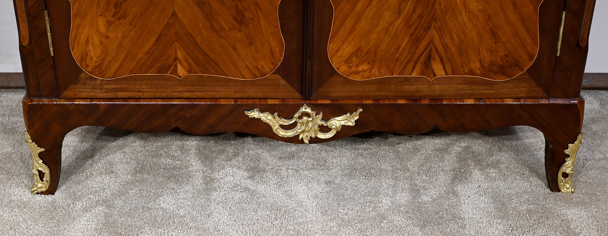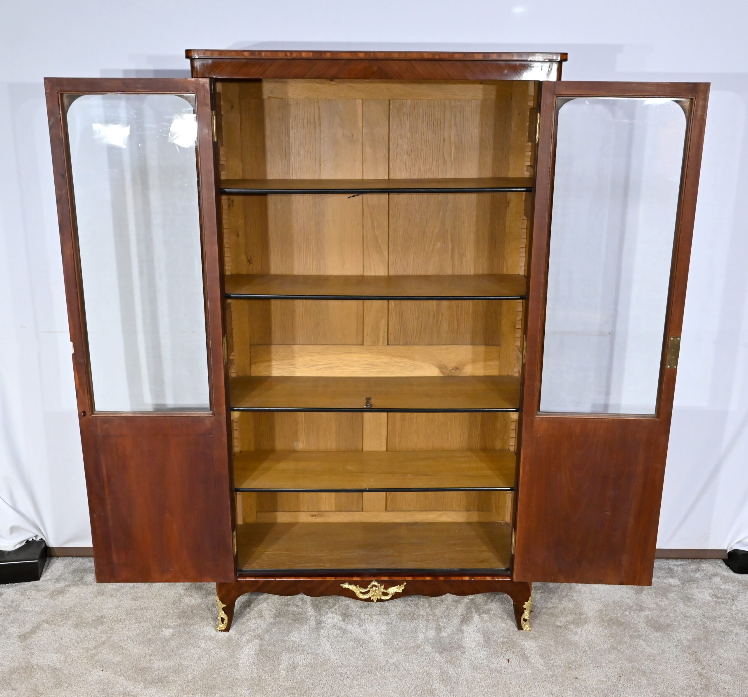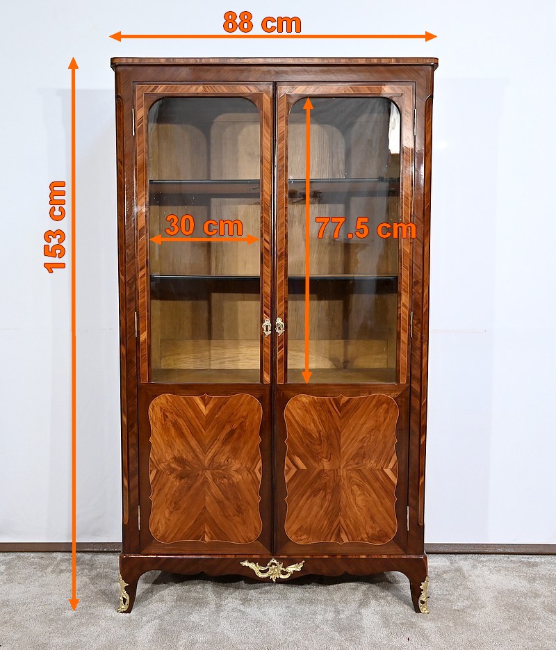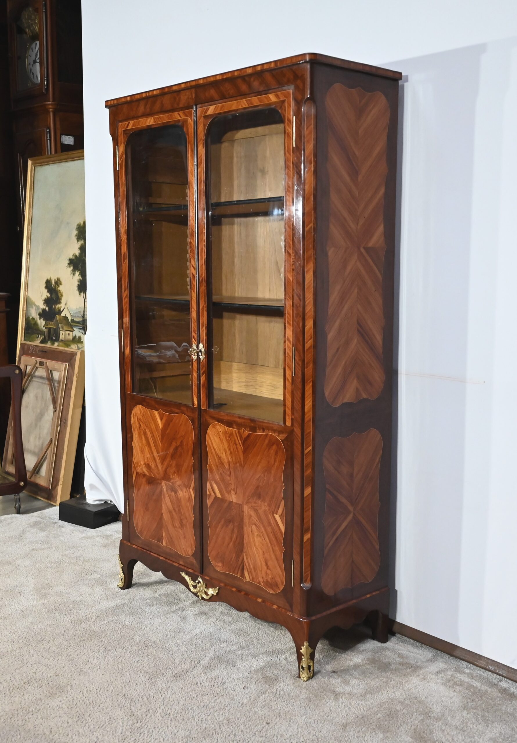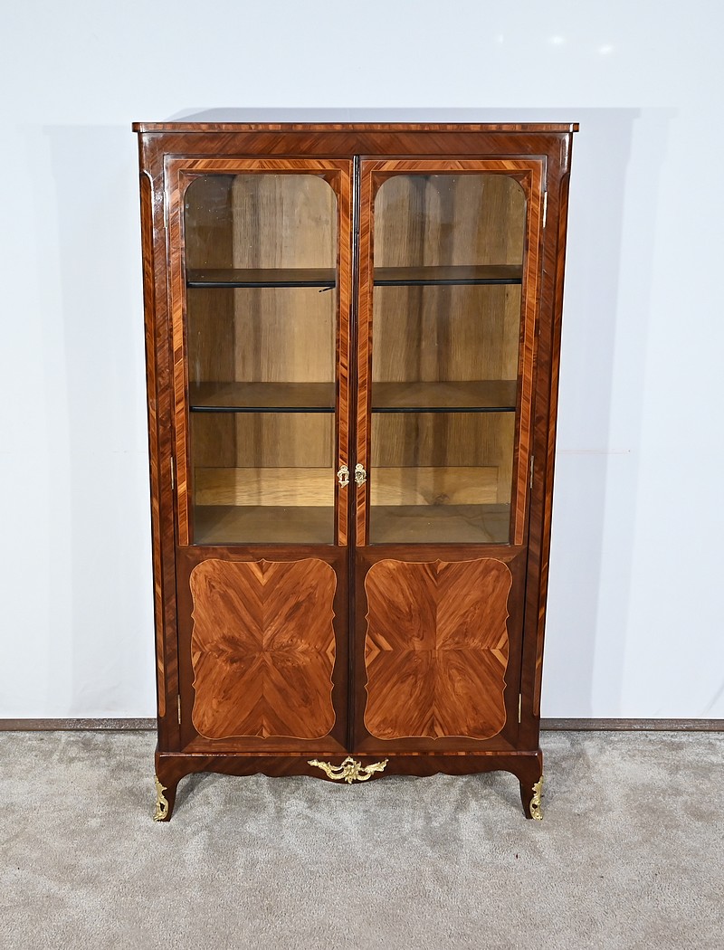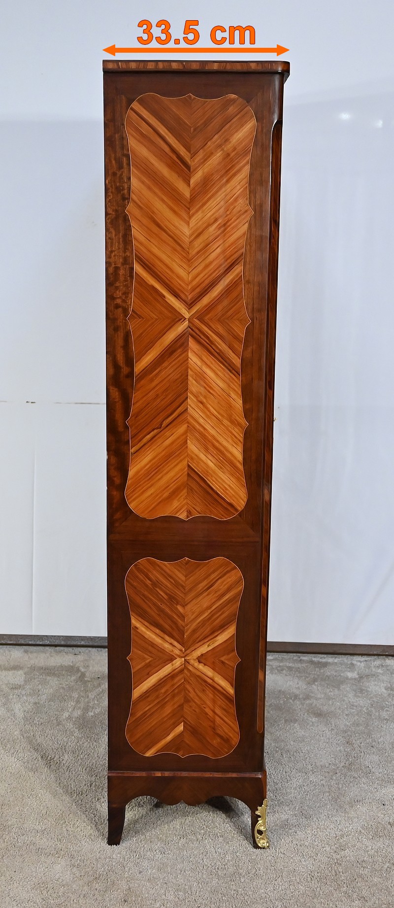 Belle vitrine en marqueterie de bois de rose et d’acajou, issue d’un atelier parisien du milieu du XIXe siècle.