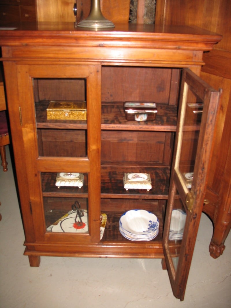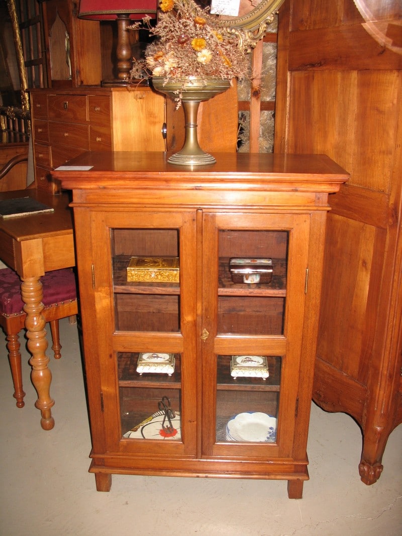 Petite vitrine en Teck de l’ancien comptoir Français de Pondichéry. Intérieur garni de 2 étagères. Début XXe