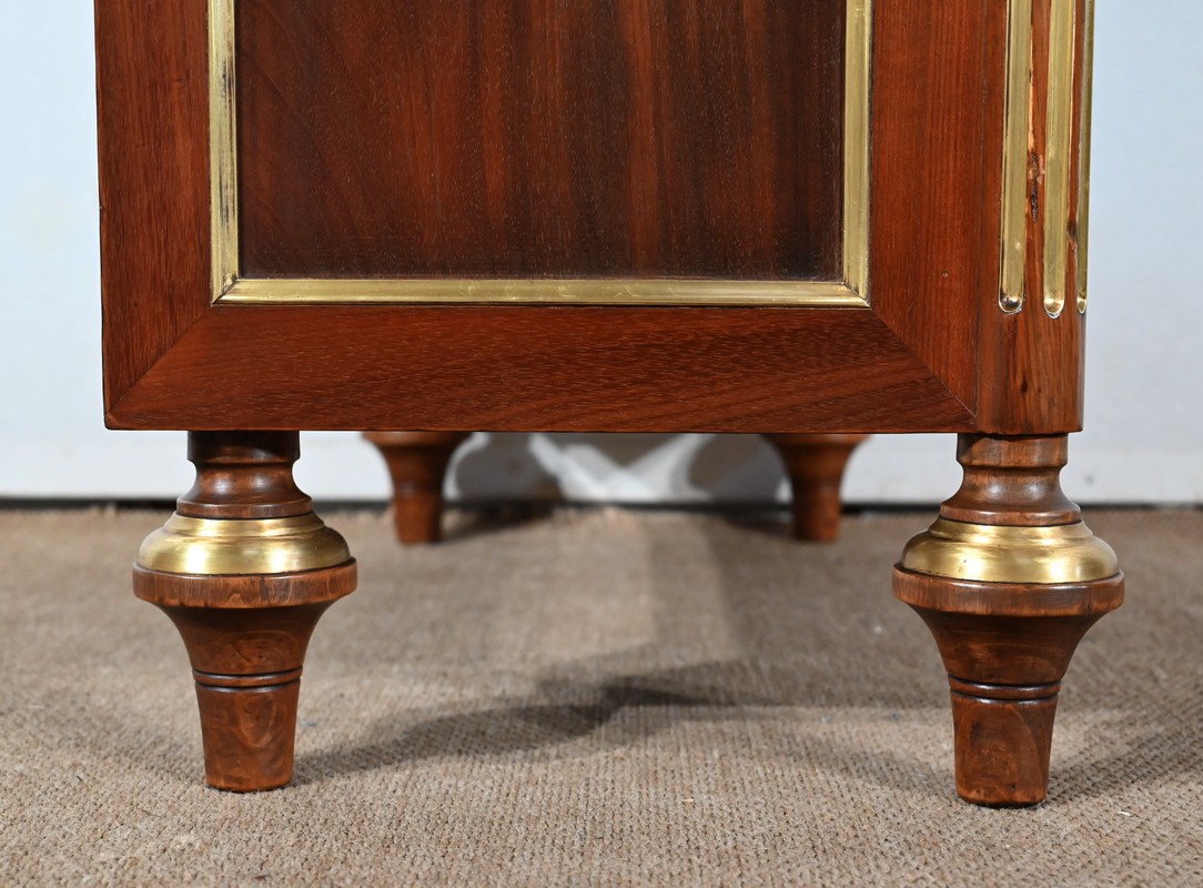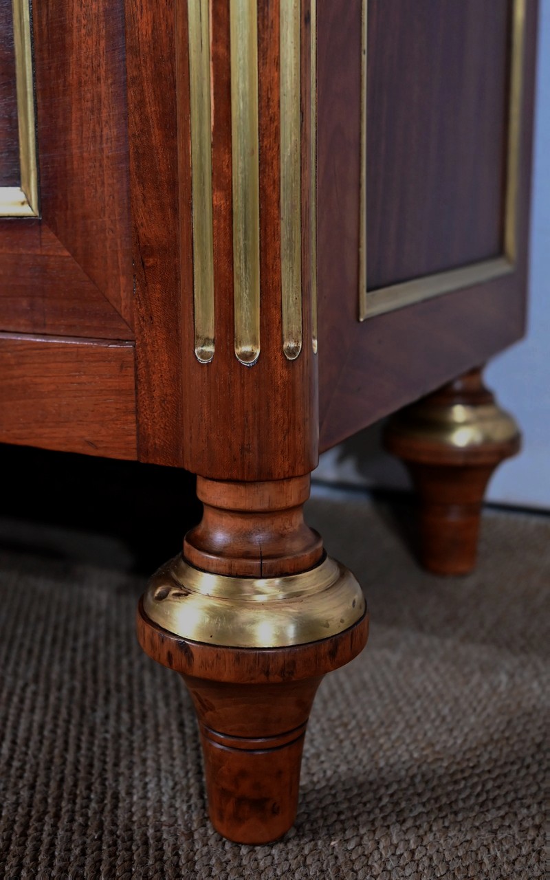 Les montants avant, en demi-colonnes attachées, sont garnis de trois cannelures arrêtées en laiton.