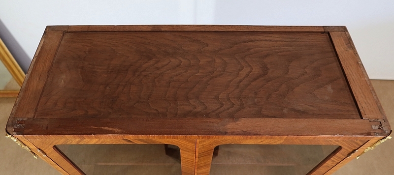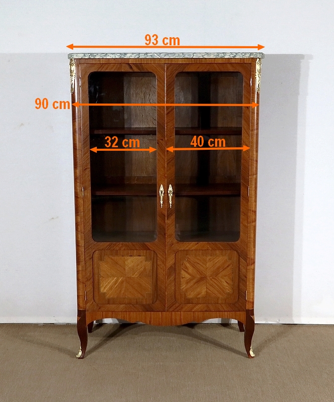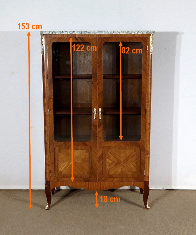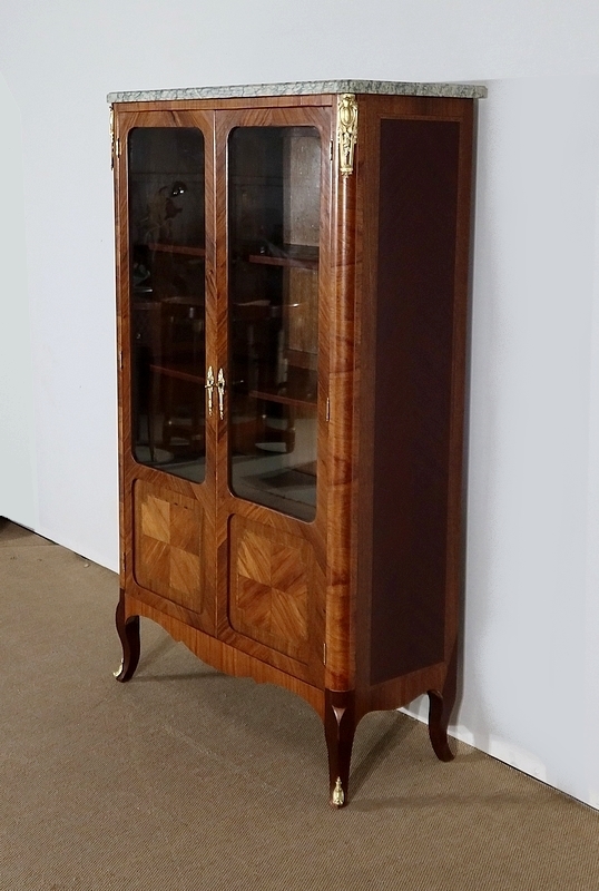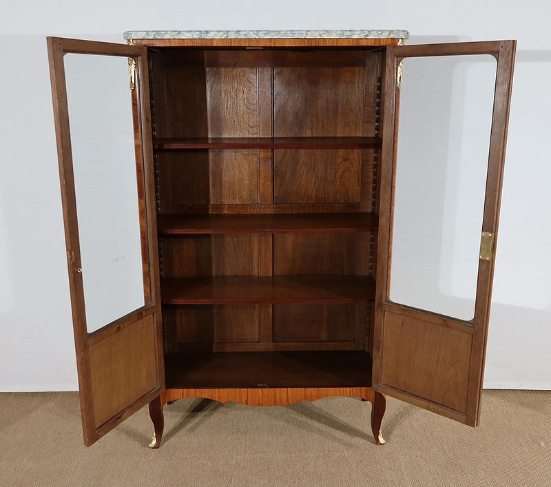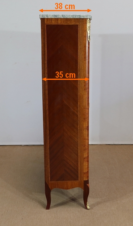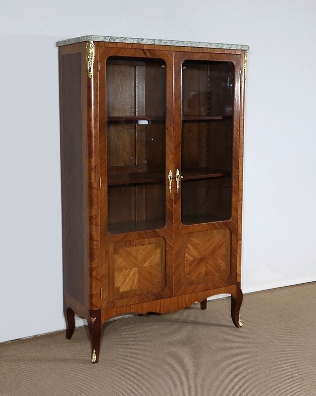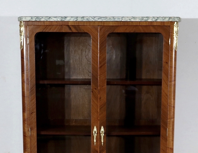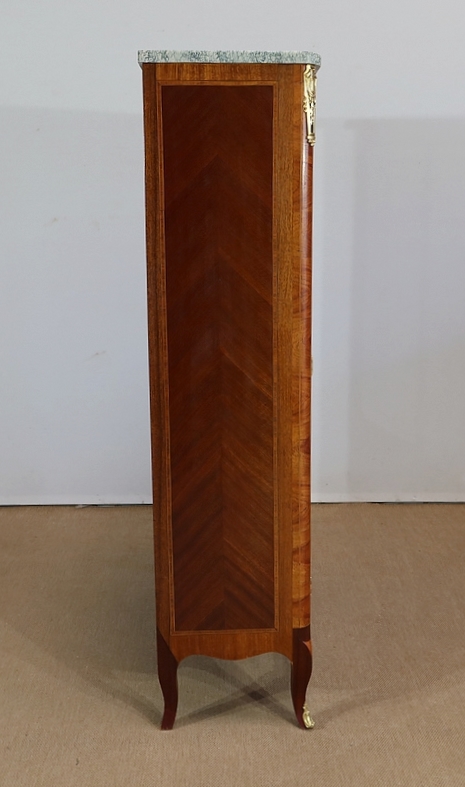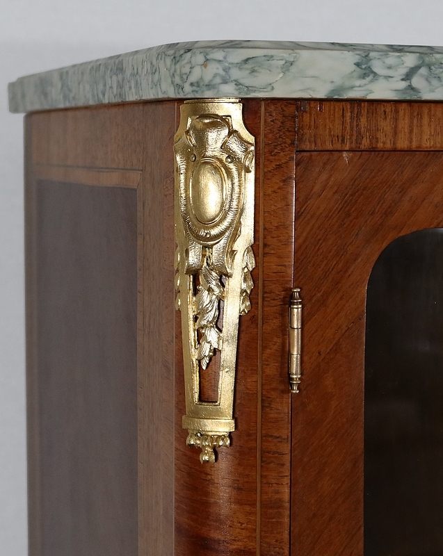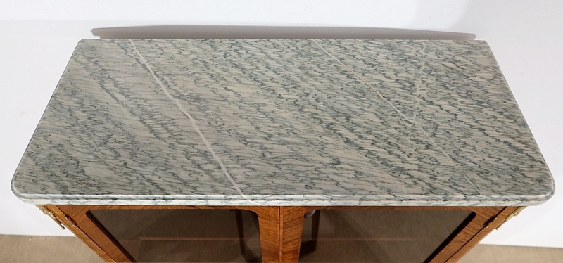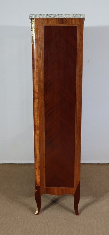Petite Vitrine en Bois Précieux et Marbre Vert d’Estours, style Transition Louis XV / Louis XVI – Début XXe