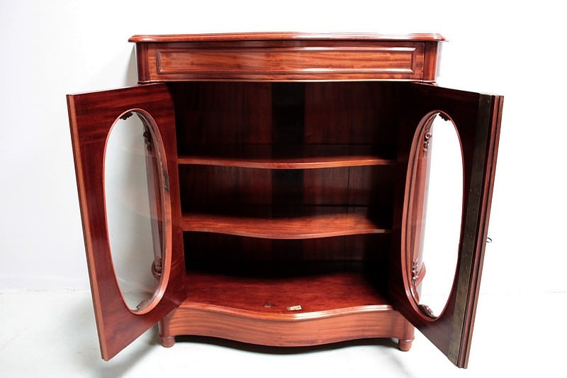 L’intérieur est garni de 2 étagères en acajou sur crémaillères.