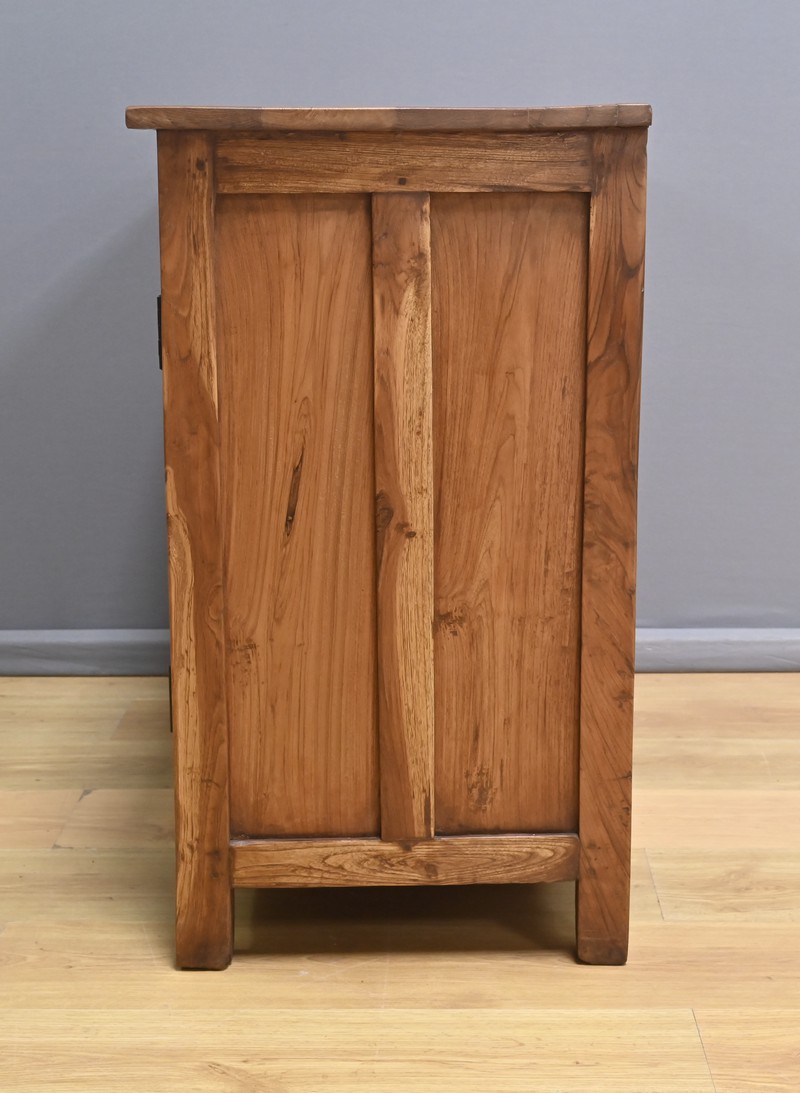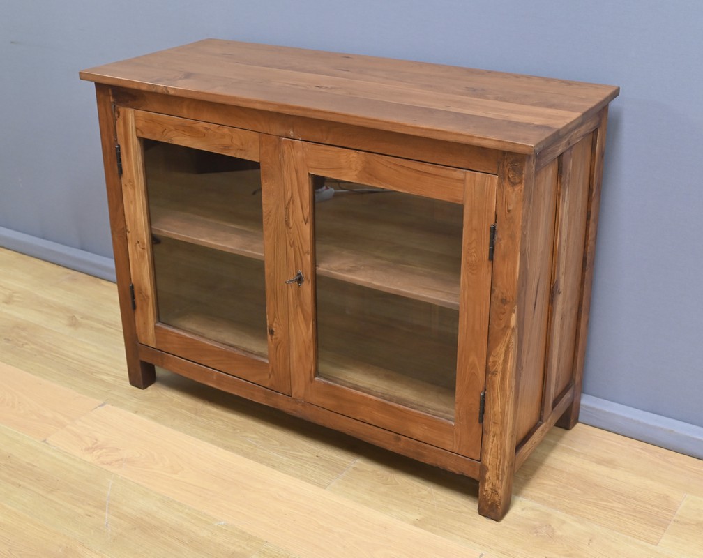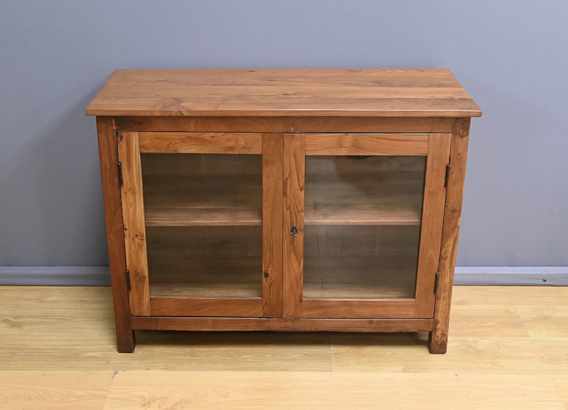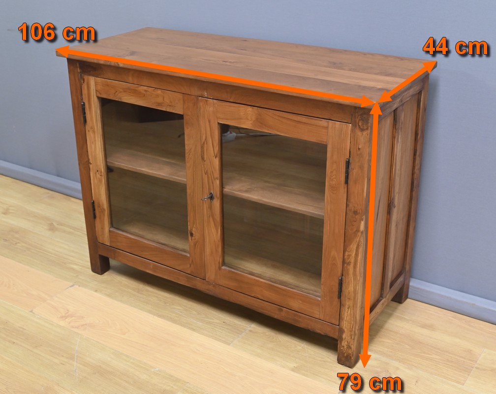 Ajoutez une touche d’authenticité à votre intérieur avec cette vitrine en teck massif, fabriquée en Inde au début du XXe siècle. Bois noble et intemporel : le teck massif, reconnu pour sa robustesse et sa beauté naturelle, confère à cette pièce un charme unique et une grande durabilité. Optez pour un meuble de rangement fonctionnel : doté de deux portes vitrées équipées d’une serrure avec clé, il permet de mettre en valeur vos objets tout en les protégeant. Son intérieur comprend une étagère qui divise l’espace en deux niveaux, idéal pour organiser vos divers articles. Véritable pièce de caractère, cette vitrine est parfaite pour les amateurs de mobiliers exotiques issu de l’artisanat indien.